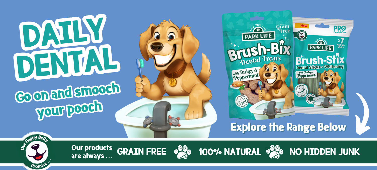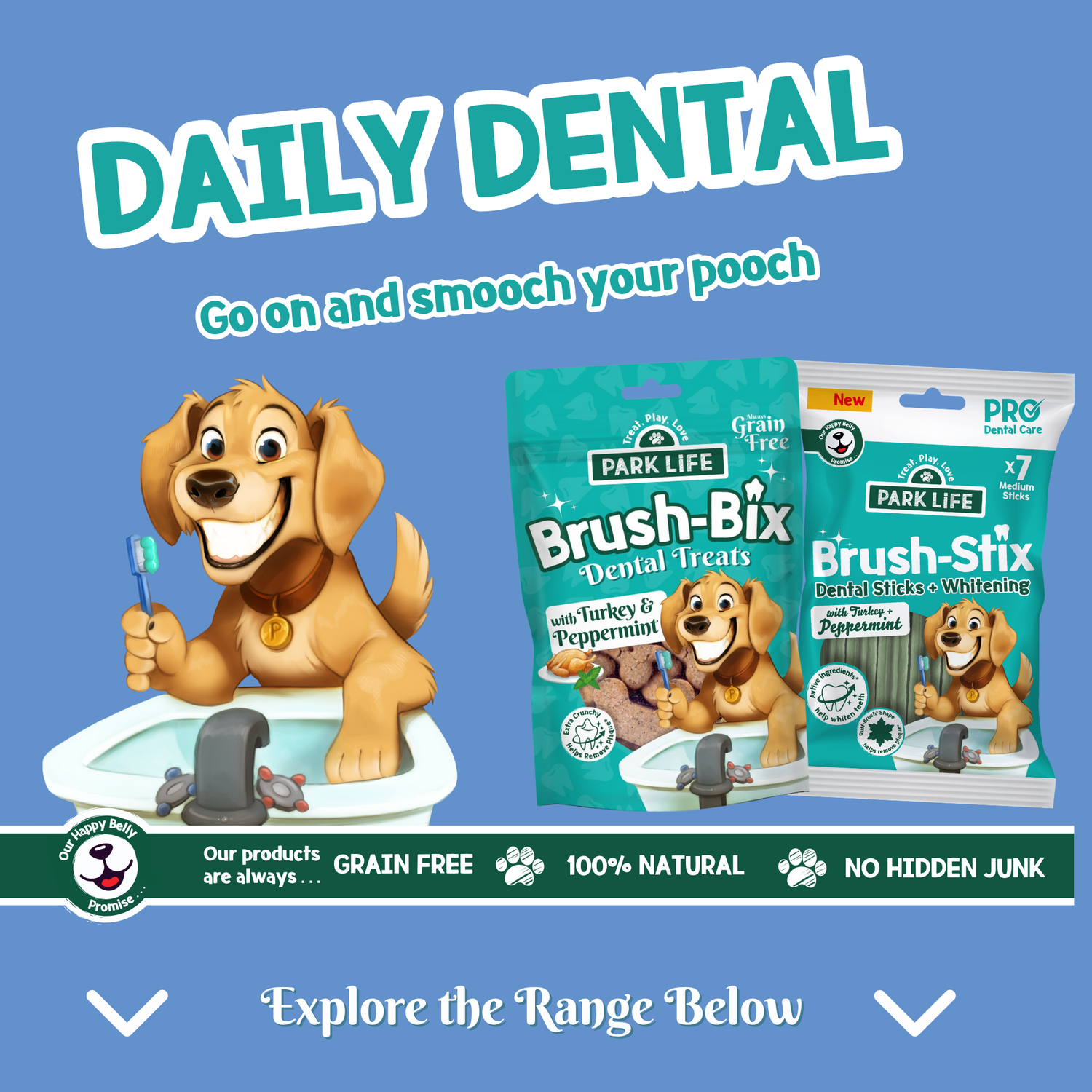 Banish bad breath with the best dental sticks for dogs from PARK LIFE. Choose from a selection of different shapes for a tasy , refreshing treat that both you and your dog get to enjoy. Get yours above today and bring a new freshness to those cherished puppy kisses.